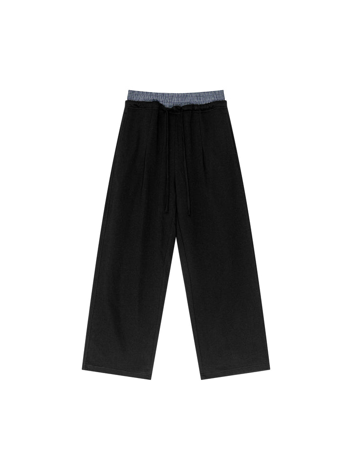 Contrast plaid waistband with adjustable drawstring