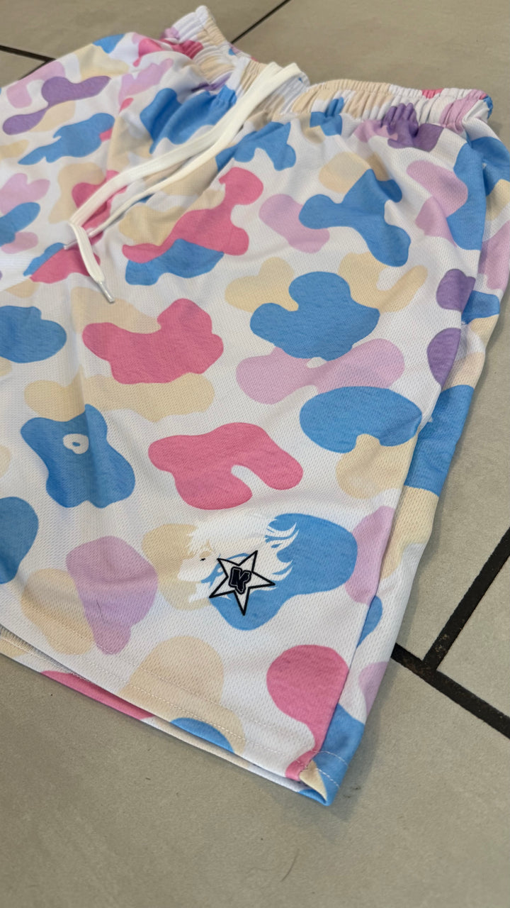 Candy Camouflage Unisex Mesh Shorts Above The Knee Streetwear