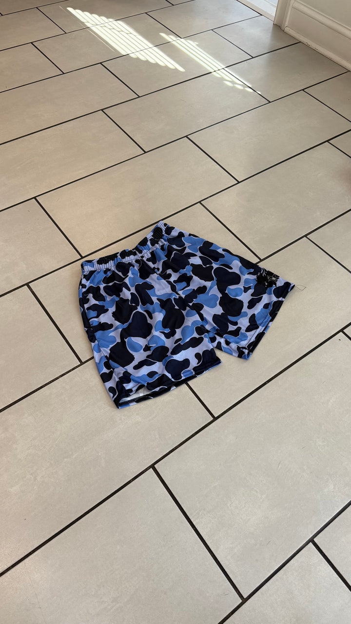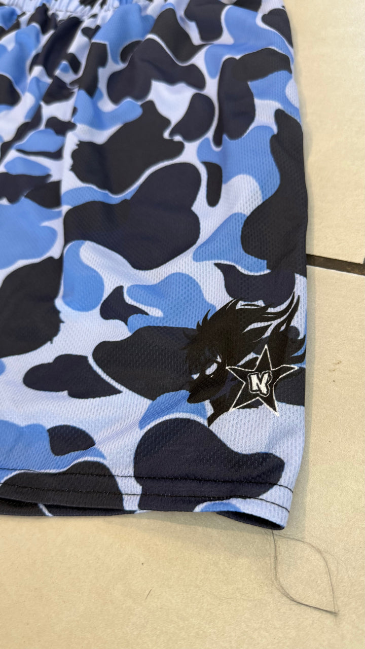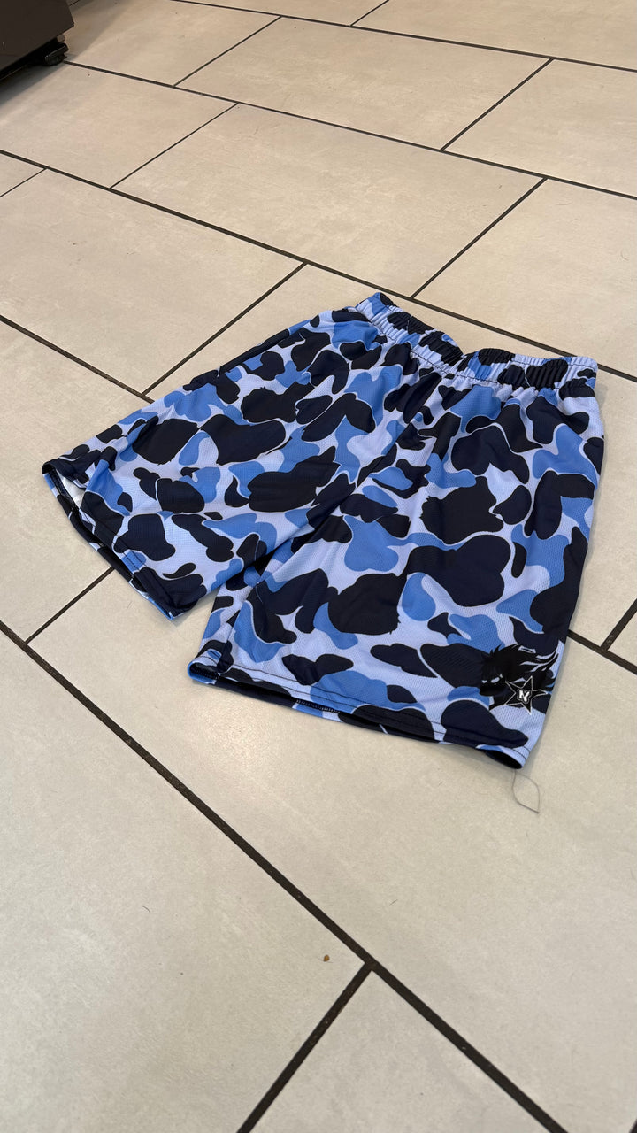 Cold Blue Camouflage Unisex Mesh Shorts Above The Knee Streetwear