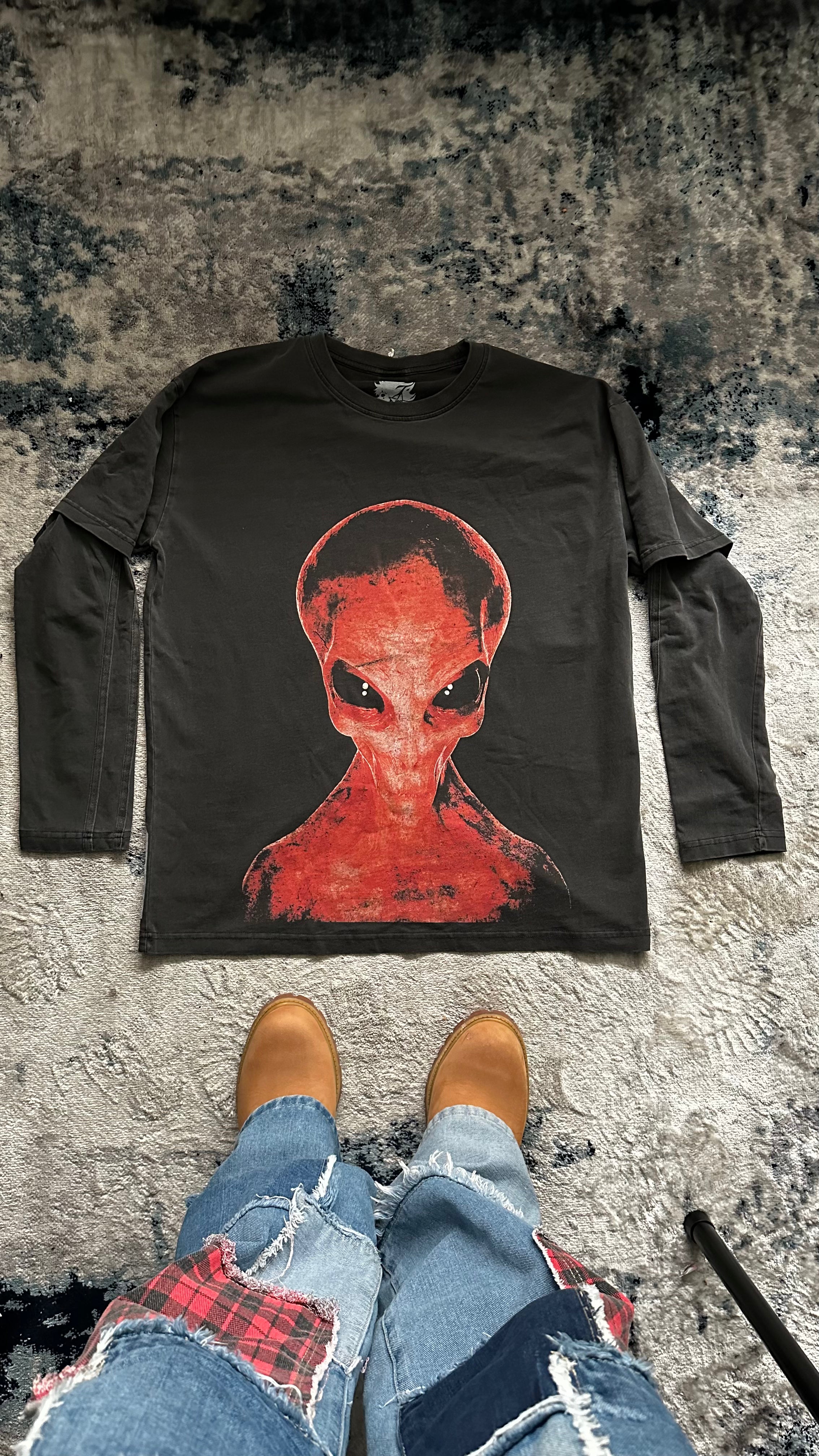 District 9 Faded Vintage Faded Long Sleeve Streetwear Y2K