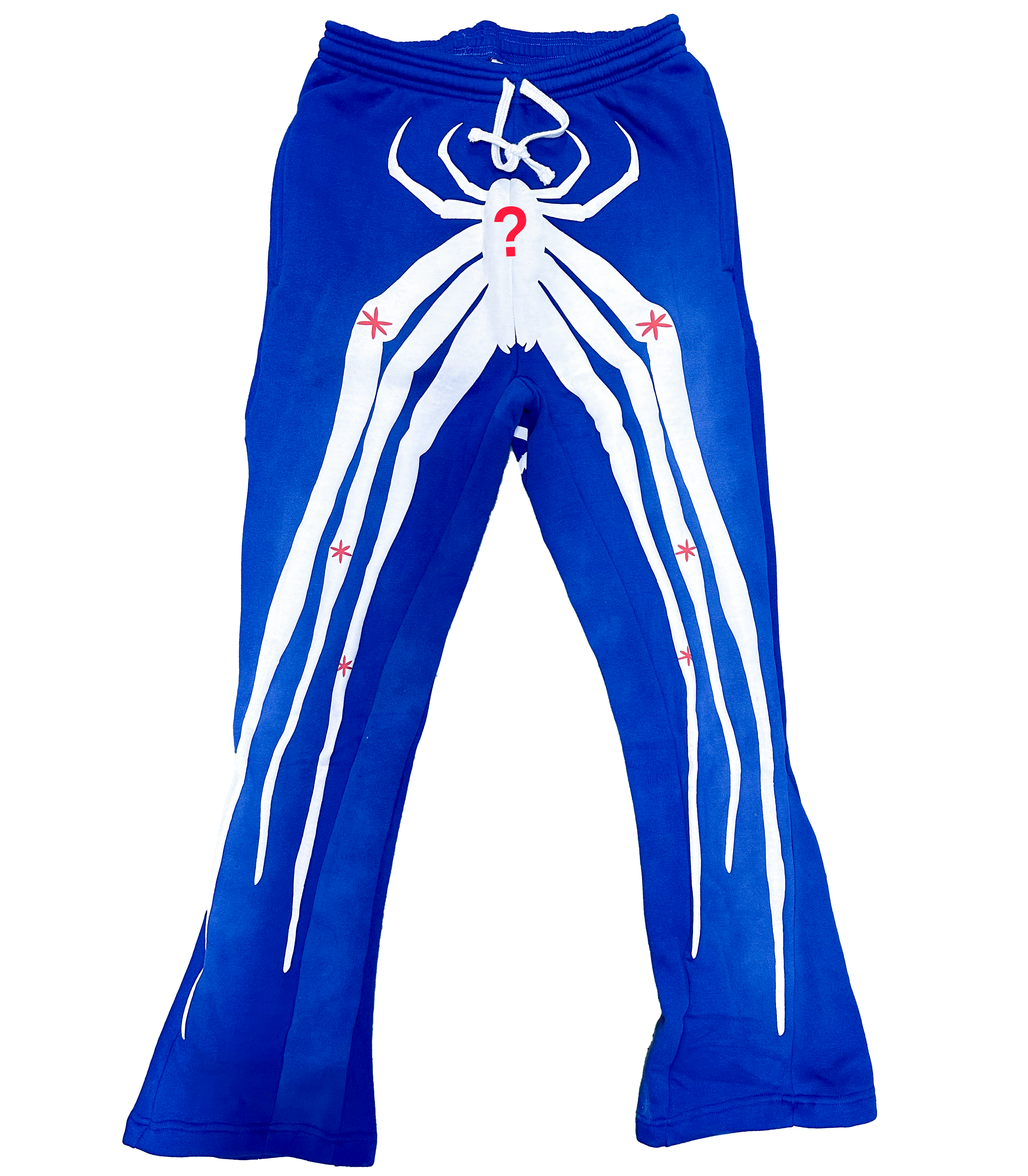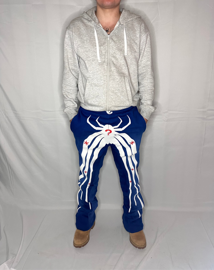 ★ LIMITED ★ Neniom Puff Printed Oversized Spider Flared Sweatpants BLUE Streetwear Y2K