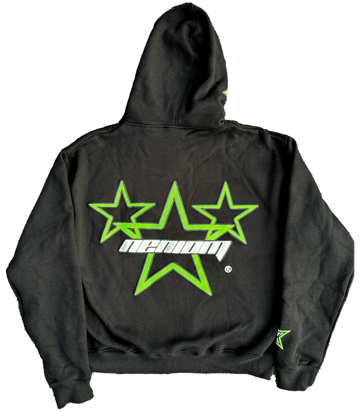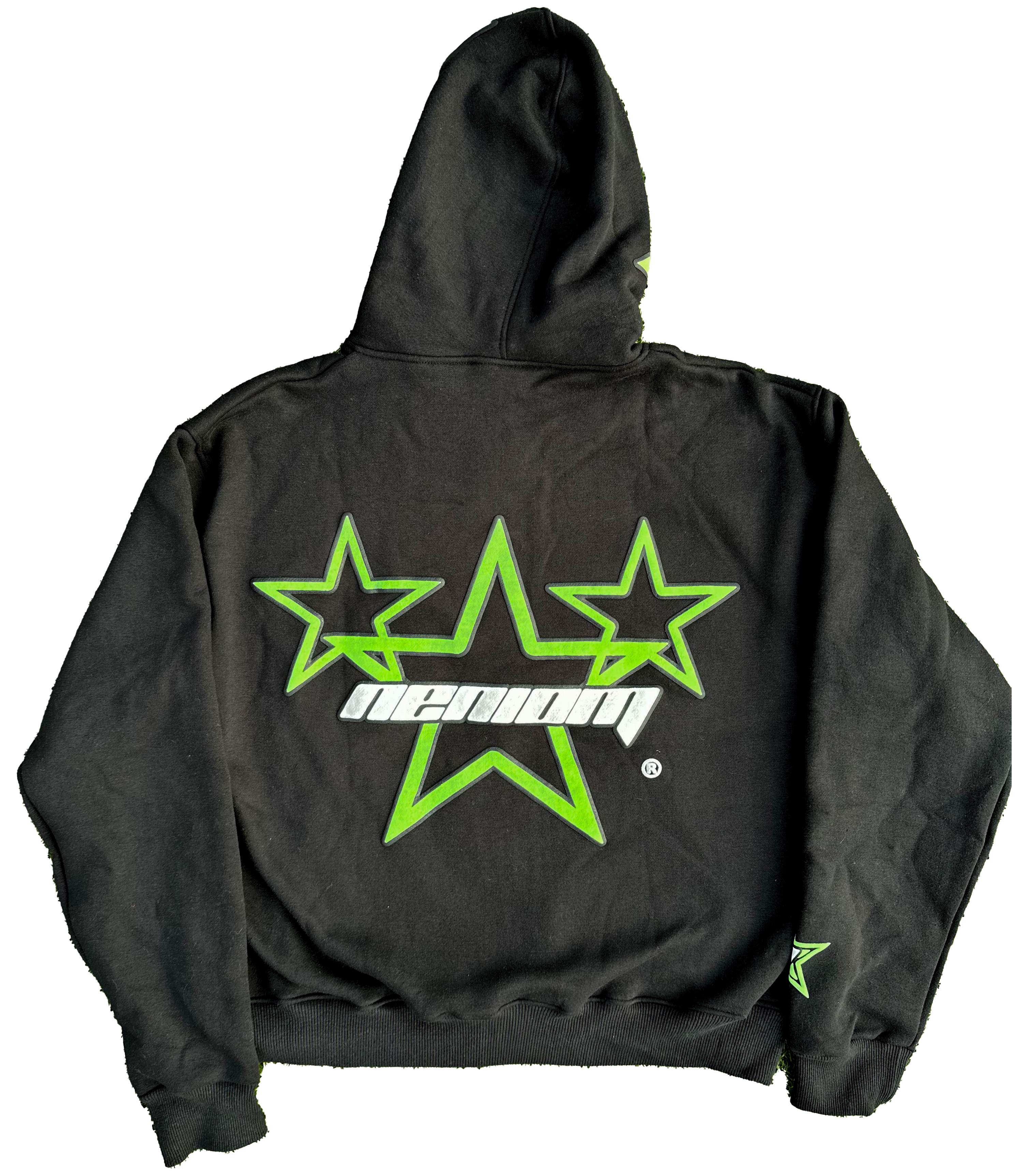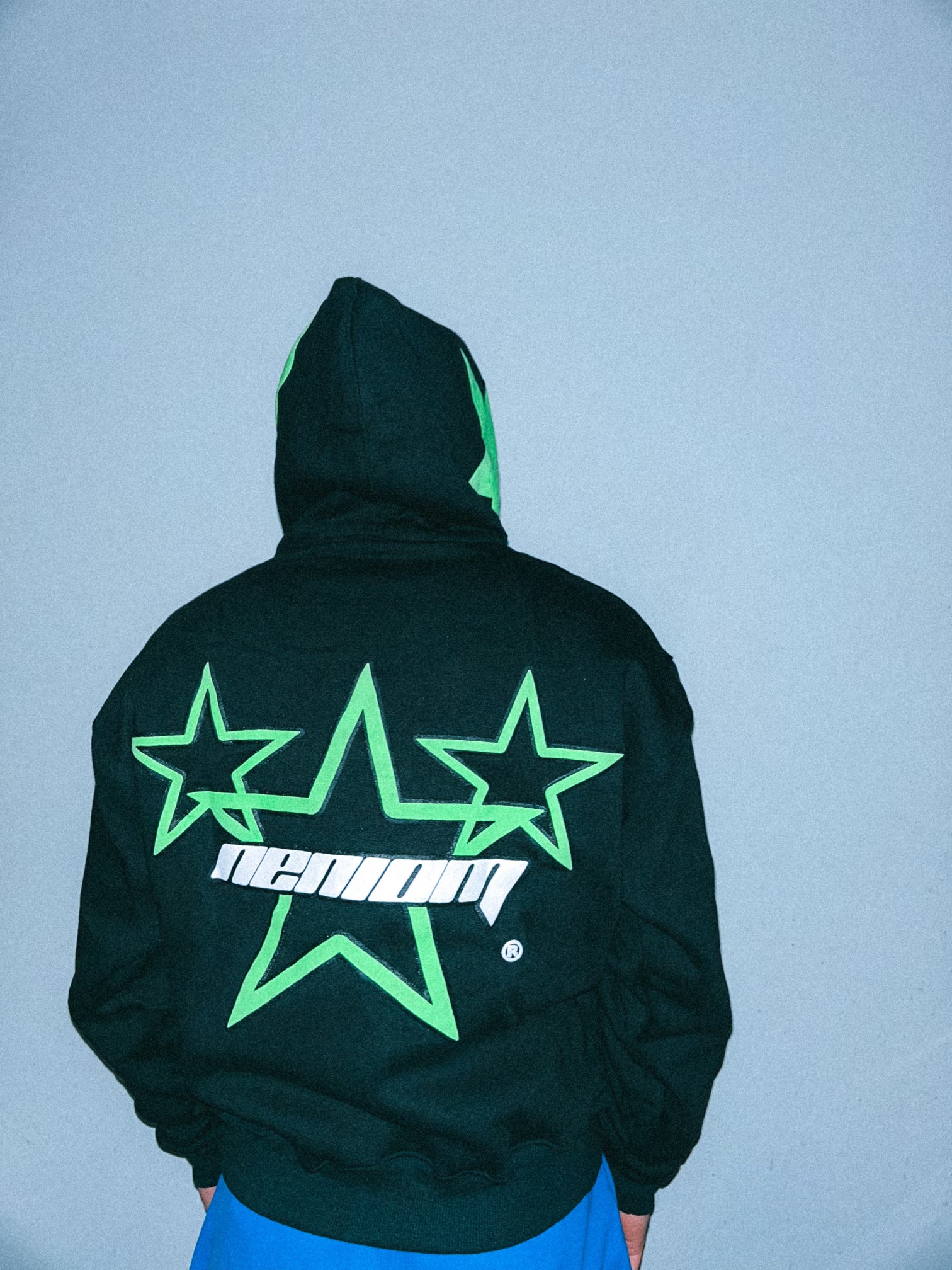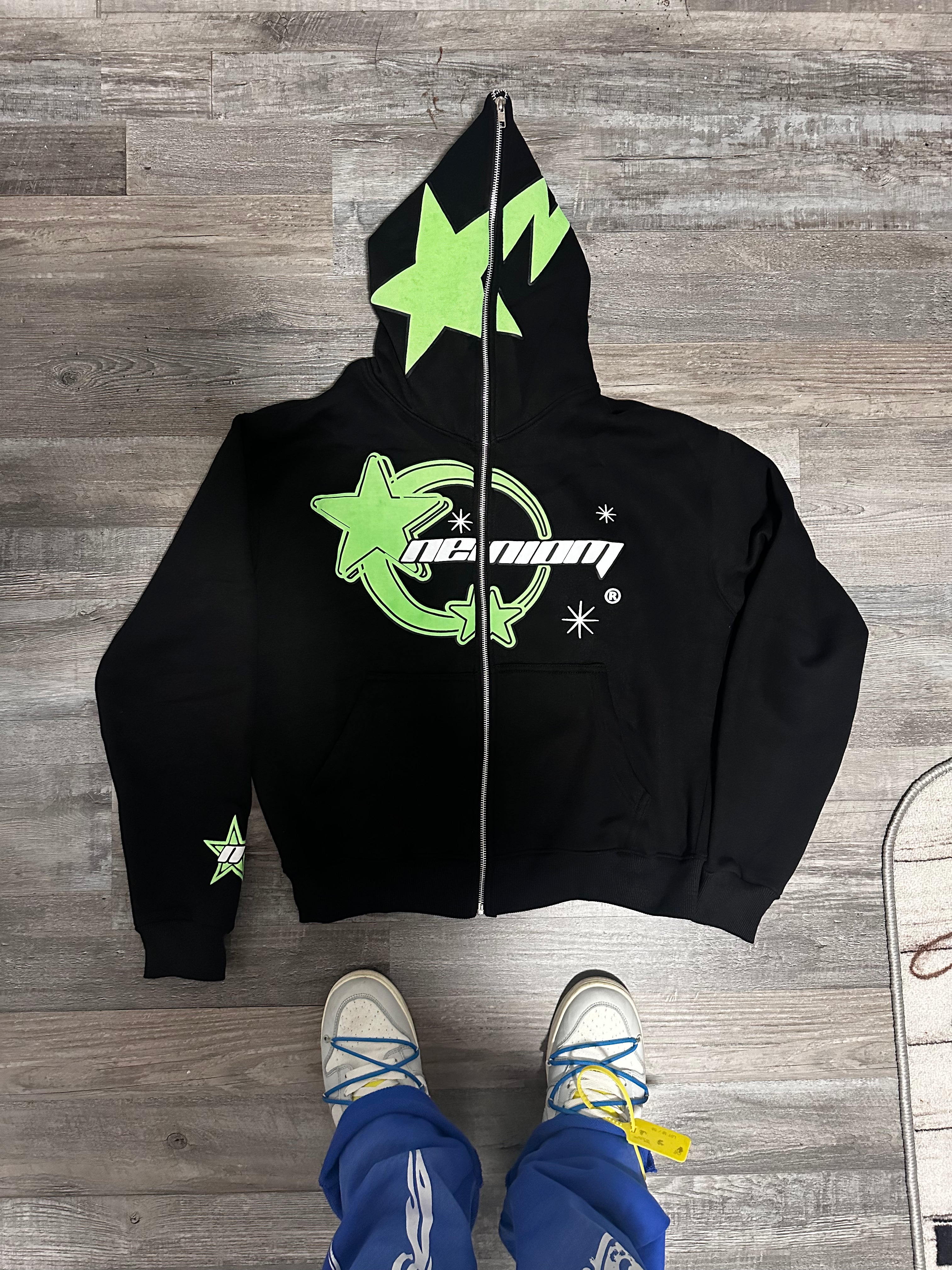 ★ LIMITED★ Neniom Puff Printed Shooting Stars Full Zip-Up BLK Hoodie Streetwear Y2K
