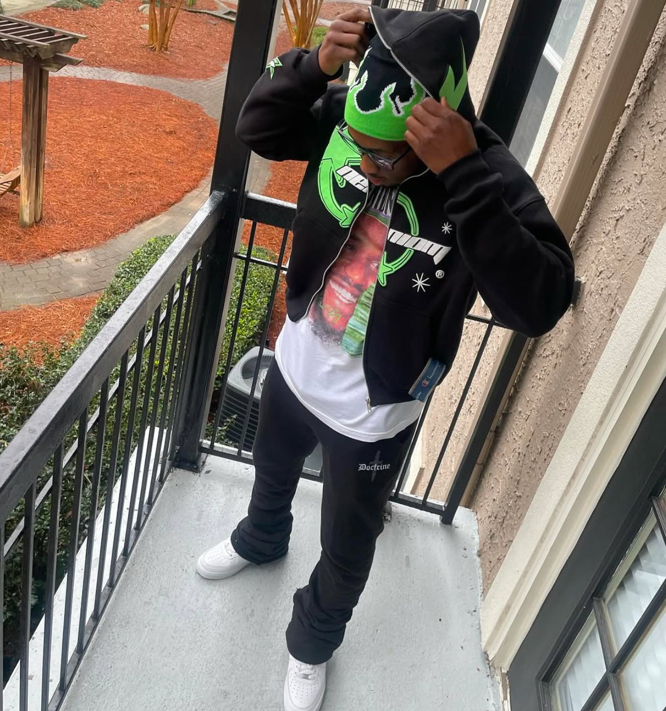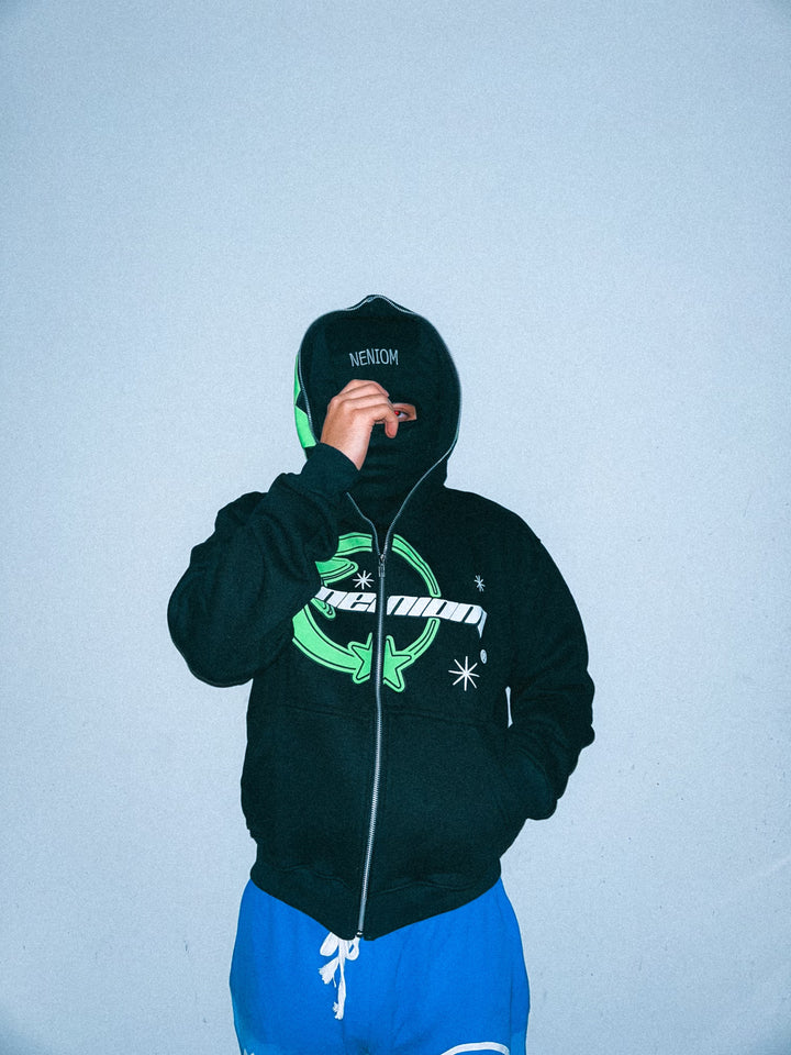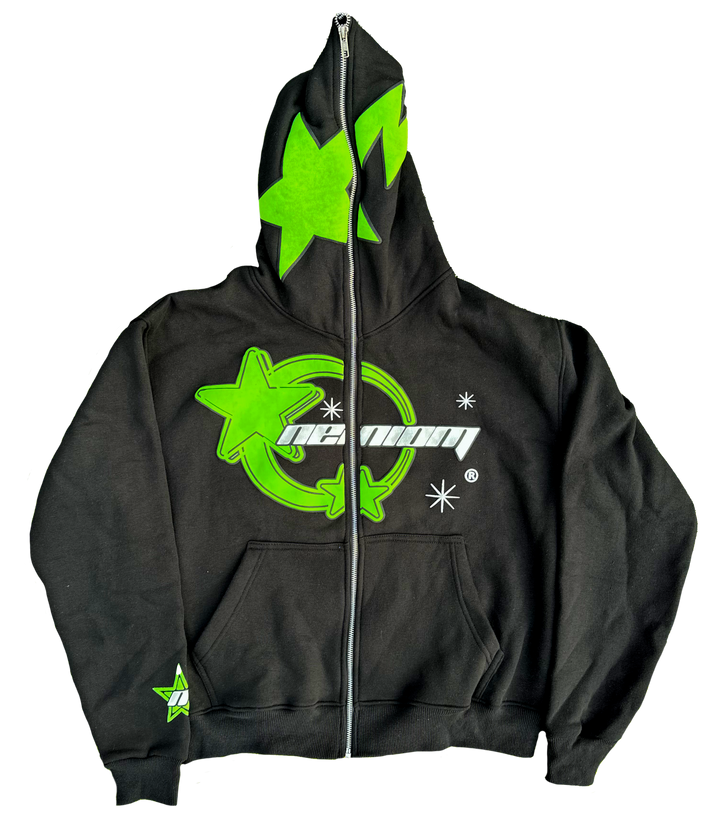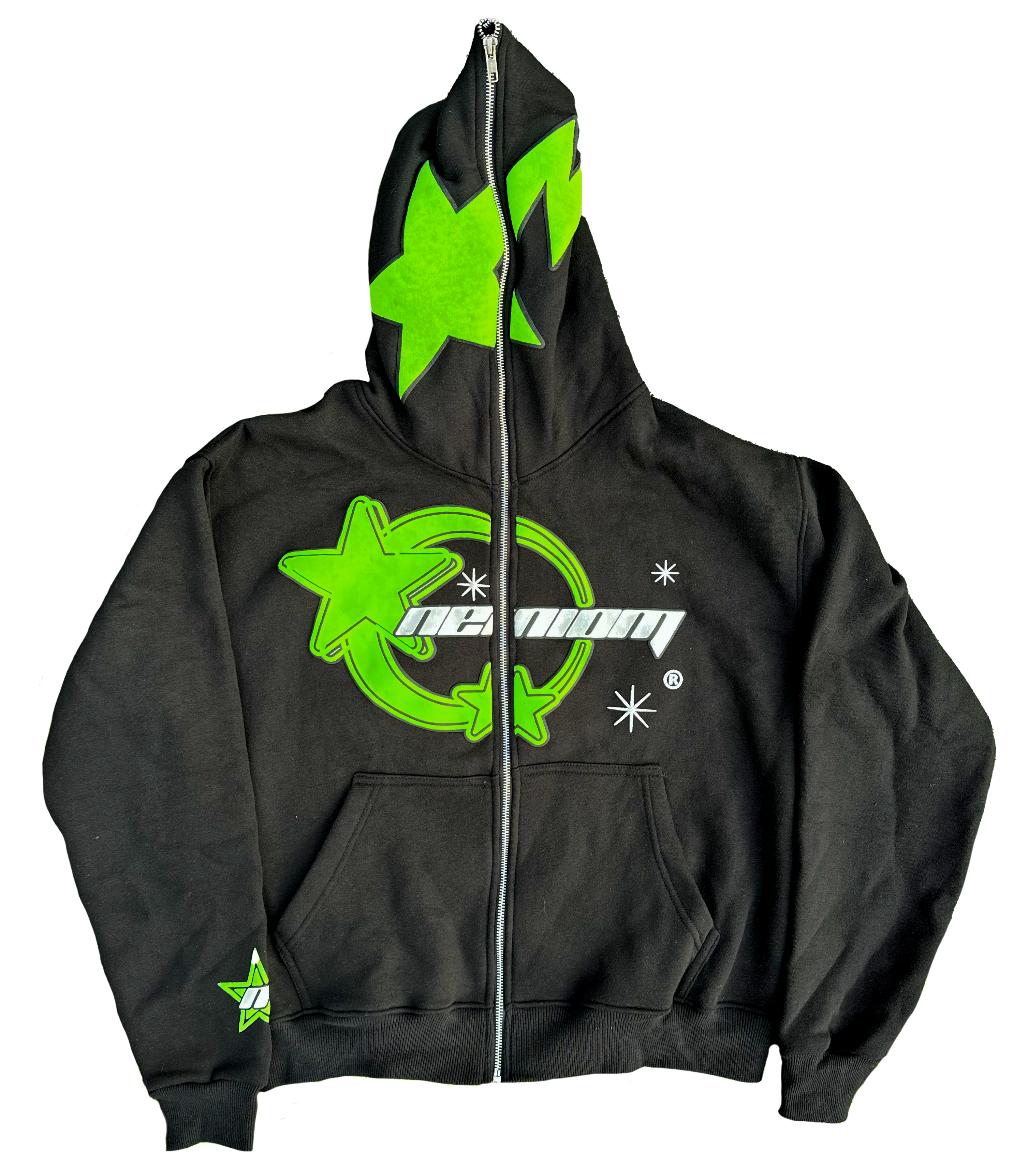 ★ LIMITED★ Neniom Puff Printed Shooting Stars Full Zip-Up BLK Hoodie Streetwear Y2K