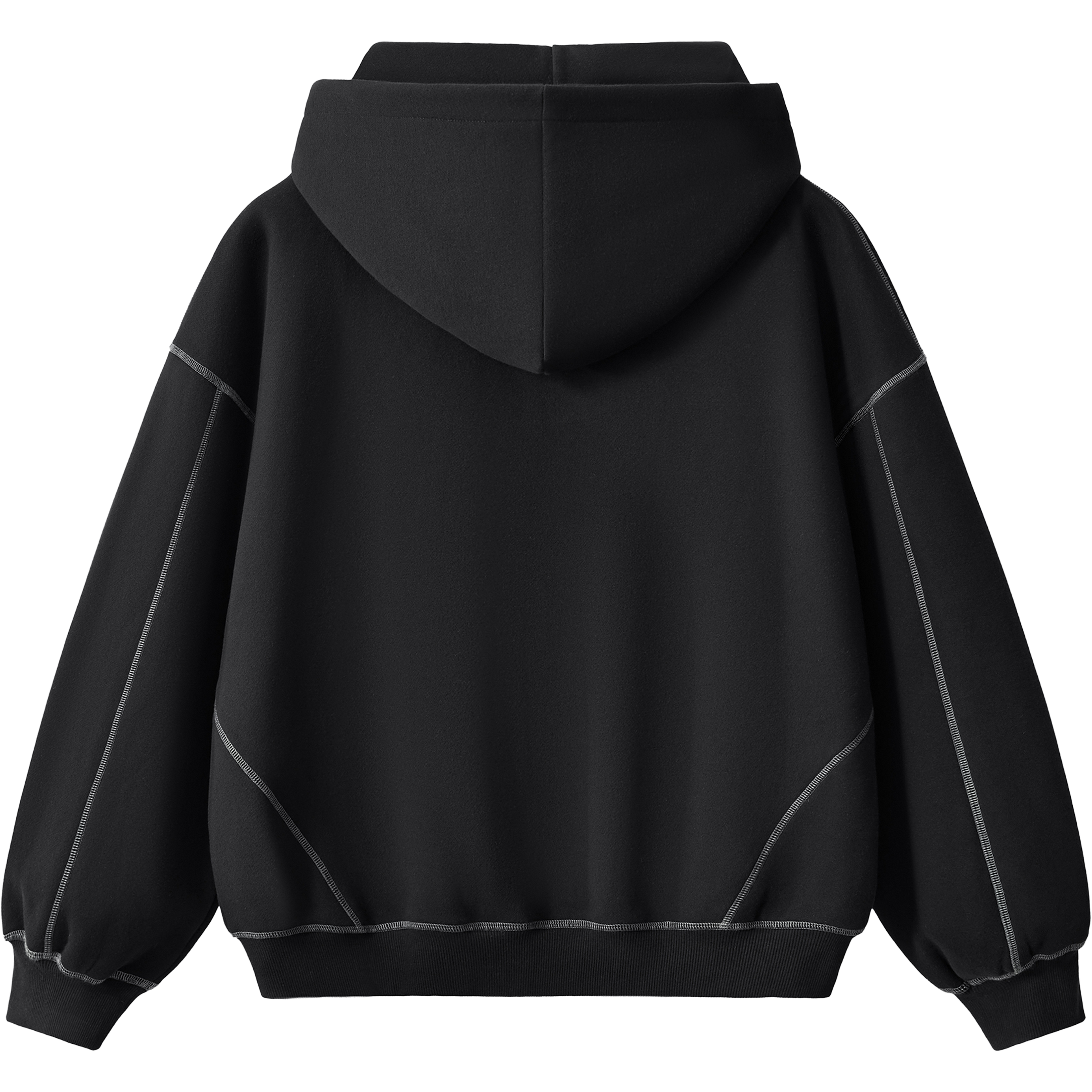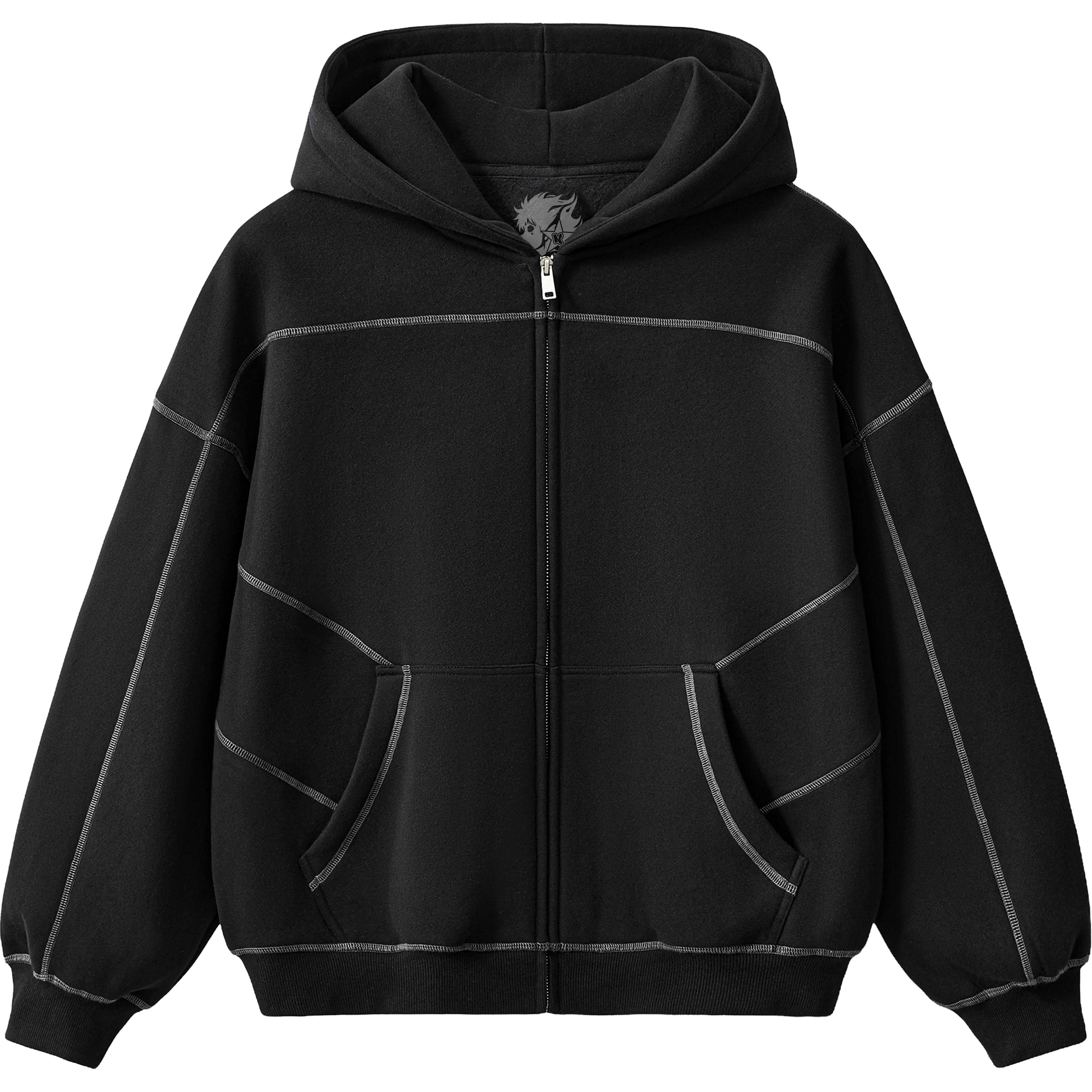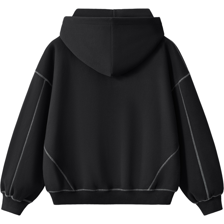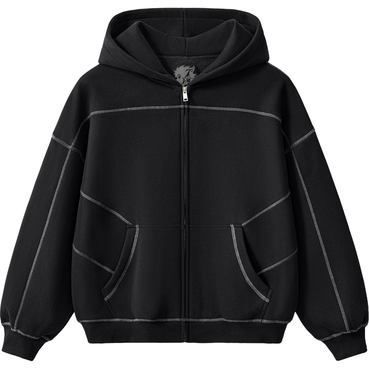 Phantom Core Black Tracksuit Contrast-Stitched Boxy Fleece Zip Up Hoodie Streetwear Y2K