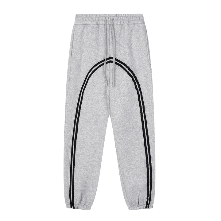 Eclipse Grey Tracksuit Contrast-Stitched Fleece Jogger Sweatpants Streetwear Y2K