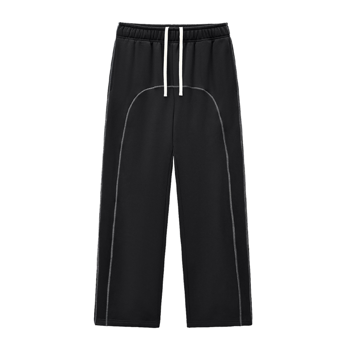 Phantom Core Black Tracksuit Contrast-Stitched Fleece Sweatpants Streetwear Y2K