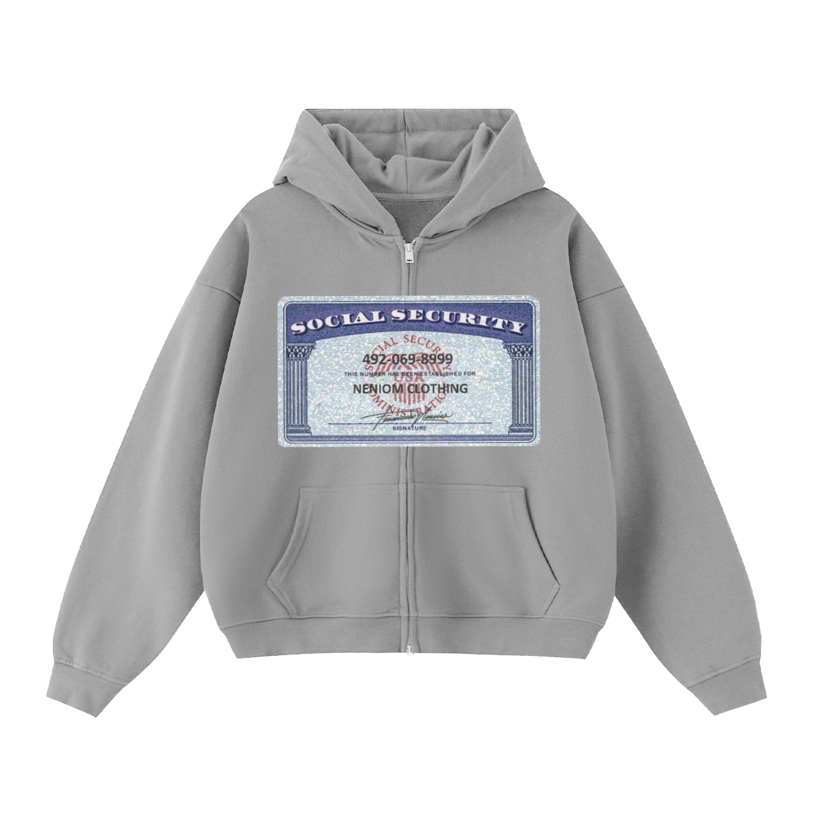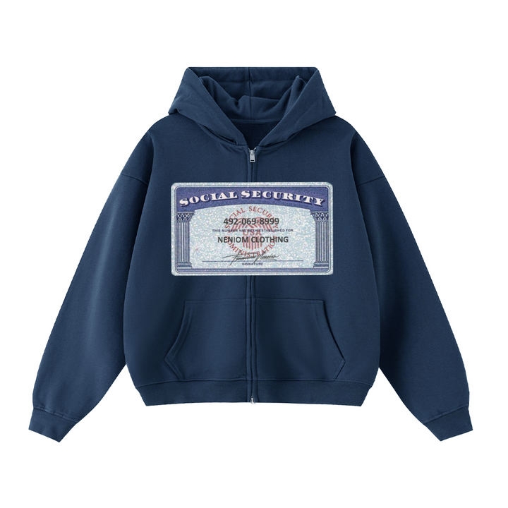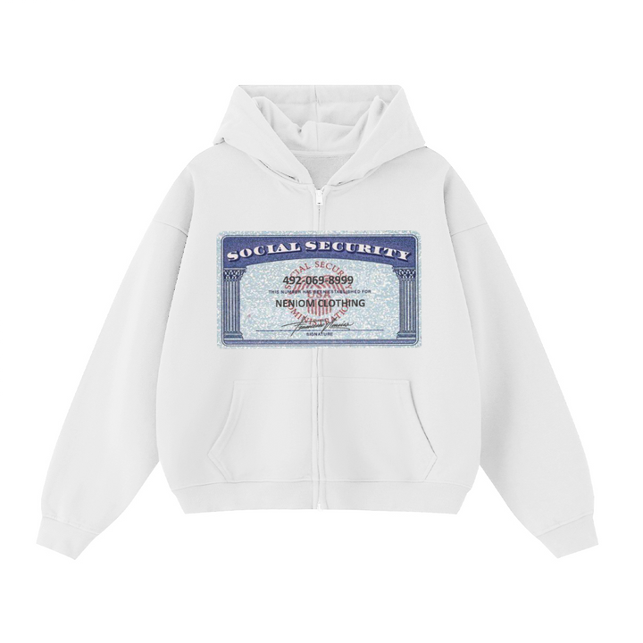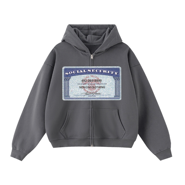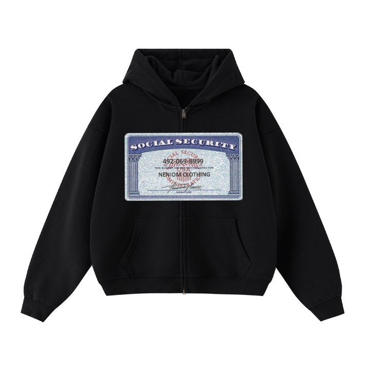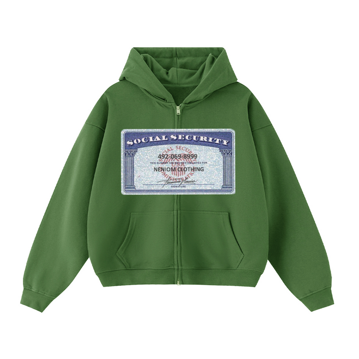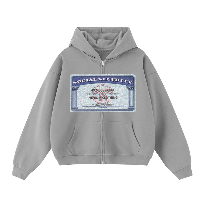 Social Security Card Unisex Cropped Double-Zip Boxy Hoodie | Streetwear Hoodies | Y2K Hoodies | Graphic Zip Up Hoodies |