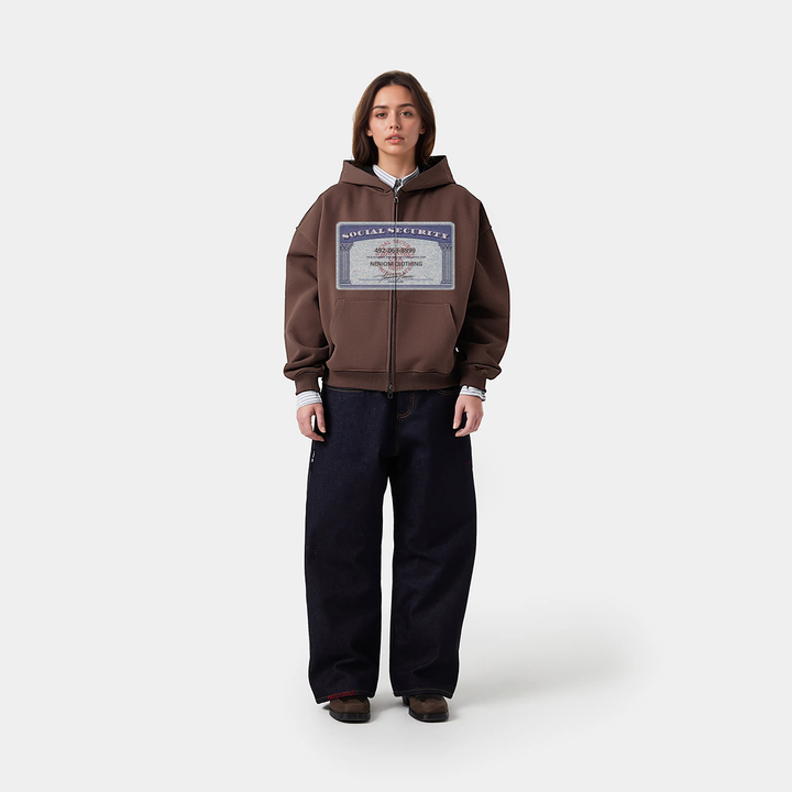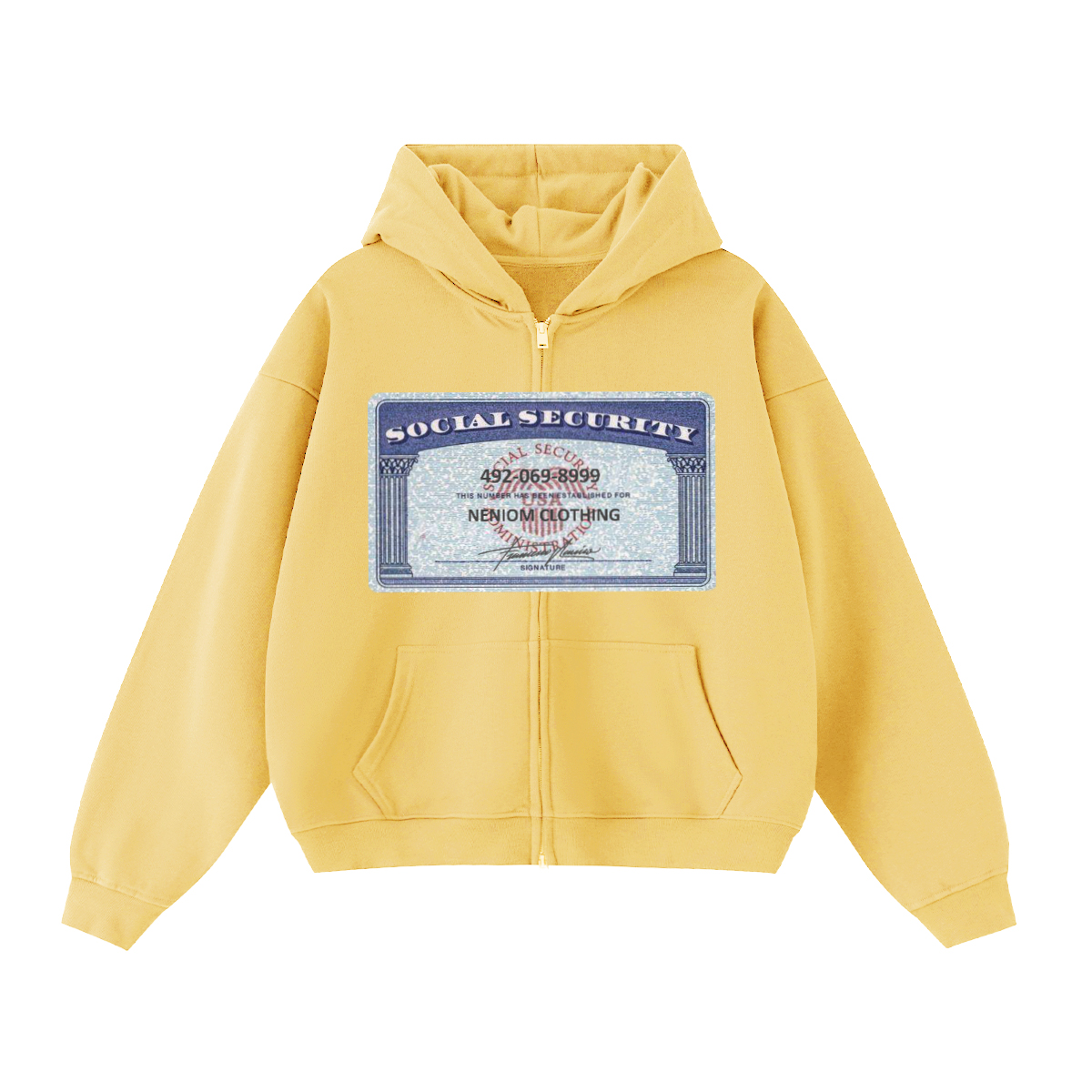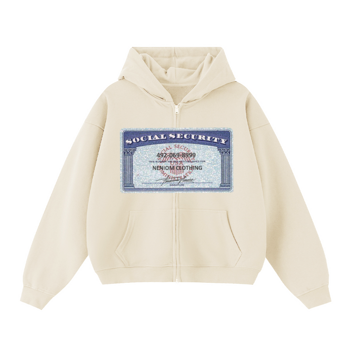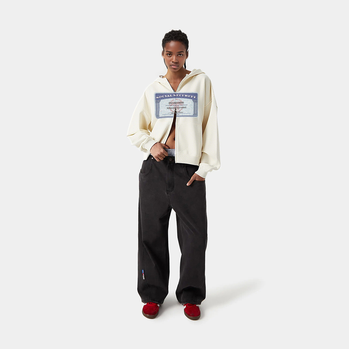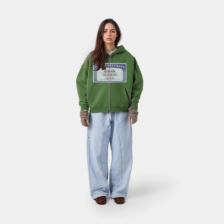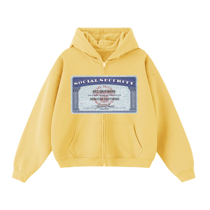 Social Security Card Unisex Cropped Double-Zip Boxy Hoodie | Streetwear Hoodies | Y2K Hoodies | Graphic Zip Up Hoodies |