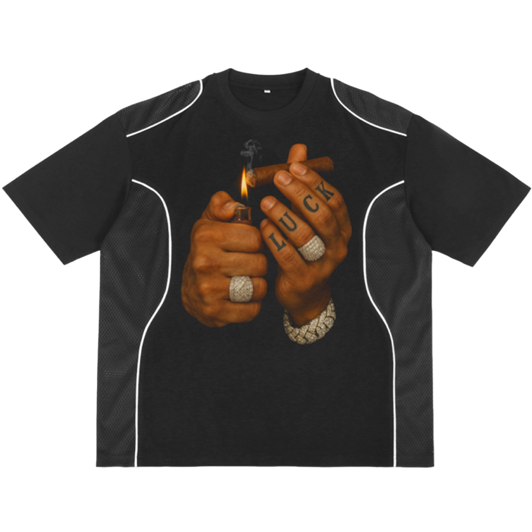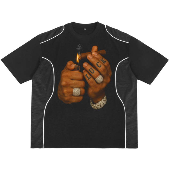 Luck Light Up Pack Contrast Piped Jersey T-Shirt Streetwear Unisex Y2K Smoke